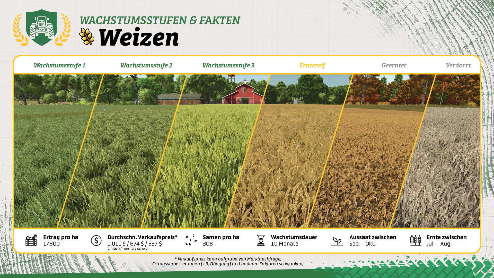 • Wenn ihr mit saisonalem Wachstum spielt, baut ihr Weizen von September bis Oktober an