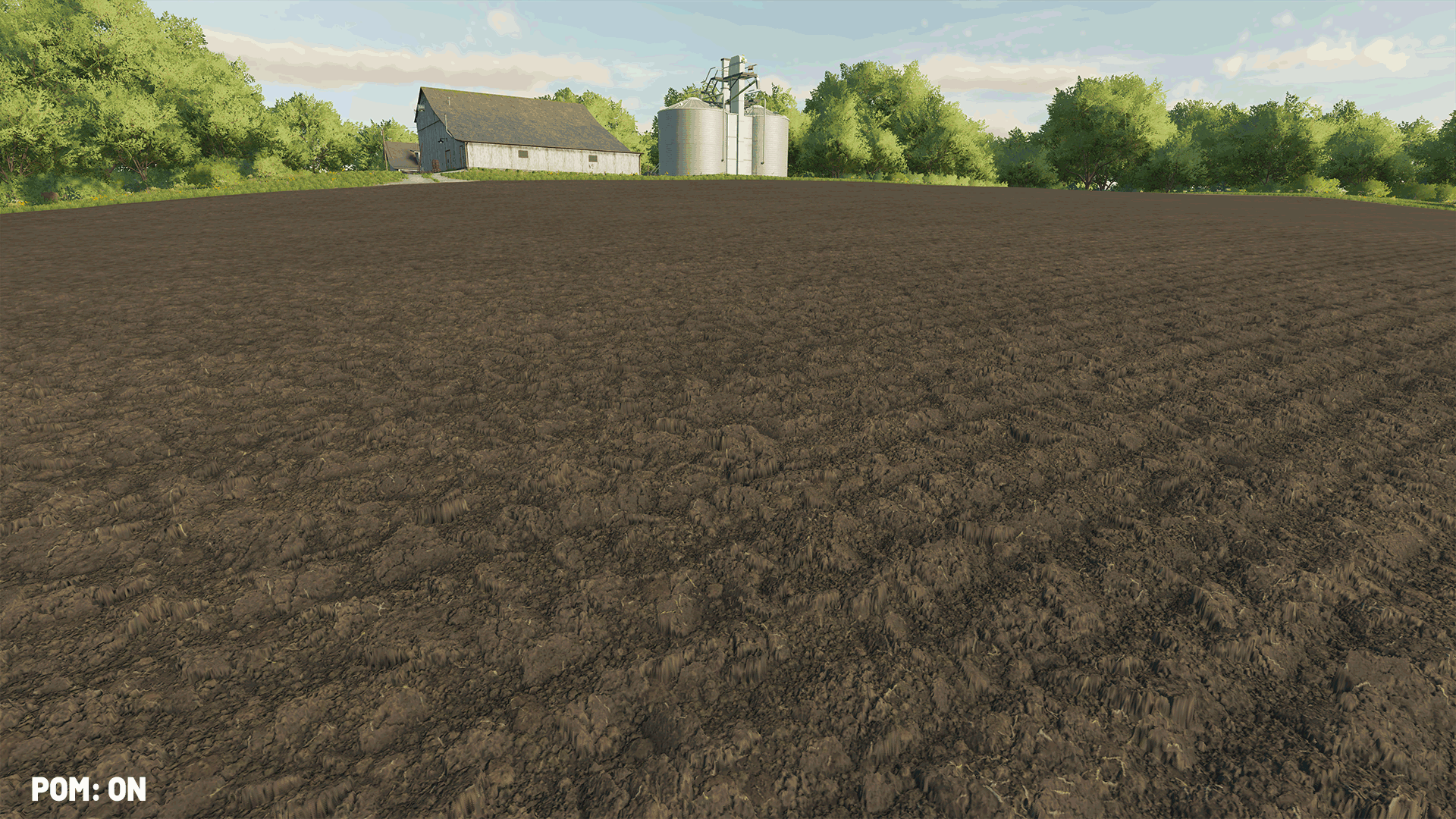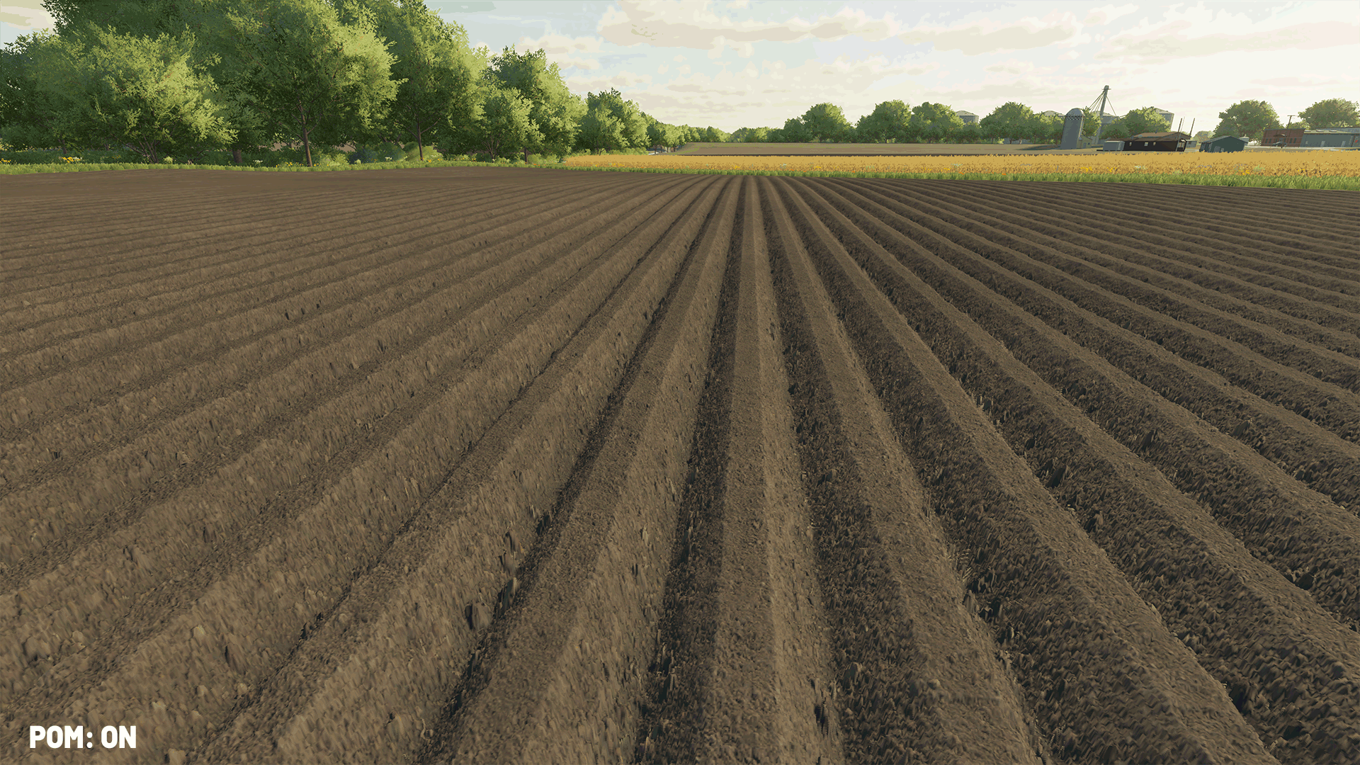 Zusätzlich handelt es sich bei Parallax Occlusion Mapping auch um eine Performance-freundliche Technik. Der Detailgrad - oder besser gesagt der Grad der Tiefendarstellung - hängt von eurer Hardware und euren Grafikeinstellungen ab. So verbessern wir einerseits Optik und Spielwelt des Landwirtschafts-Simulators und stellen andererseits sicher, das Spiel für alle Spieler Hardware-freundlich zu halten.