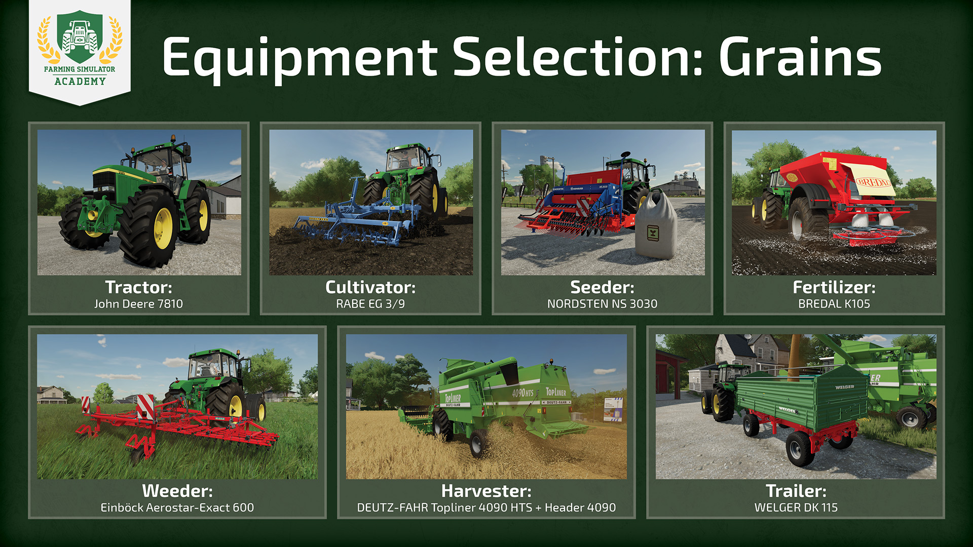 Welcome to your next "Crops 101" lesson of the Farming Simulator Academy! Today, we’re focusing on grains. In simple terms, grains are plants that grow from a single seed and produce even more seeds we want to harvest.